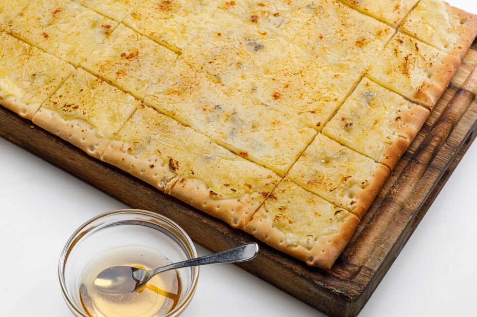 ◆芳醇な4種のチーズに、はちみつをかけて仕上げたクワトロピザ。濃厚でありながら甘みがアクセント。