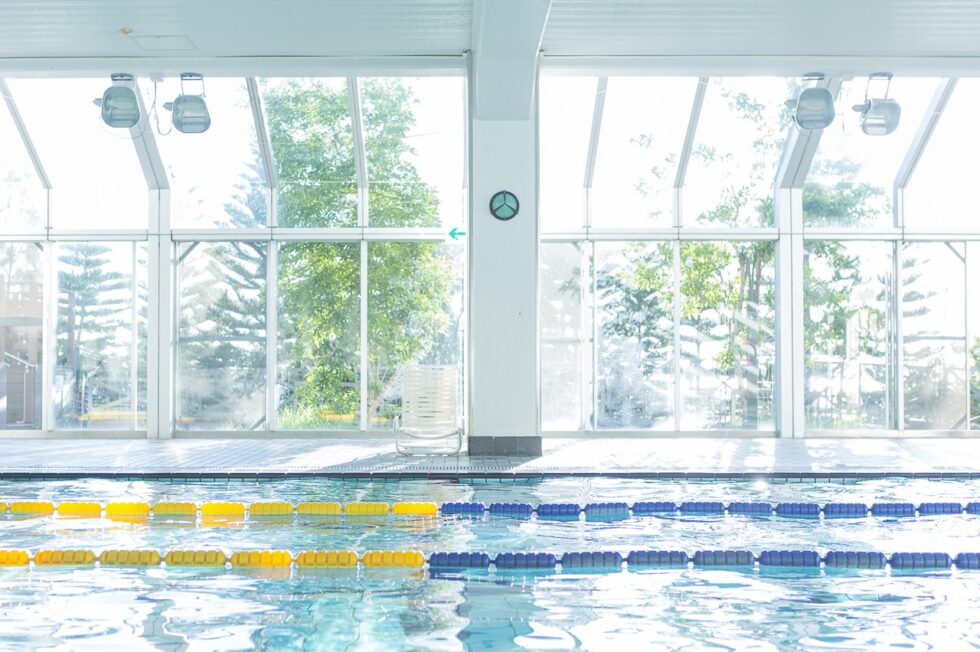 ◆年間を通してお楽しみいただける屋内プール。水深は120~140cm、水温は快適な32℃に保たれています。お子さま用のアームヘルパーやビート板の貸し出しあり、プールサイドにはレンタルタオルもご用意しております