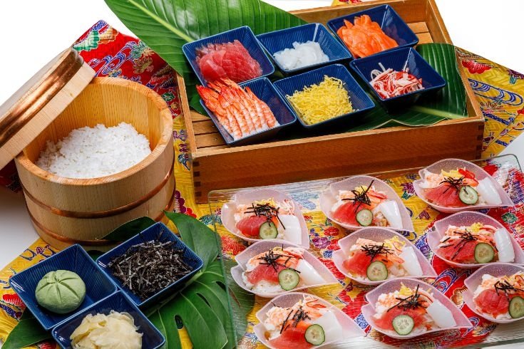 ◆好みの具材を選んで仕上げるちらし寿司。彩り豊かな海の幸を自由に組み合わせて楽しめます。