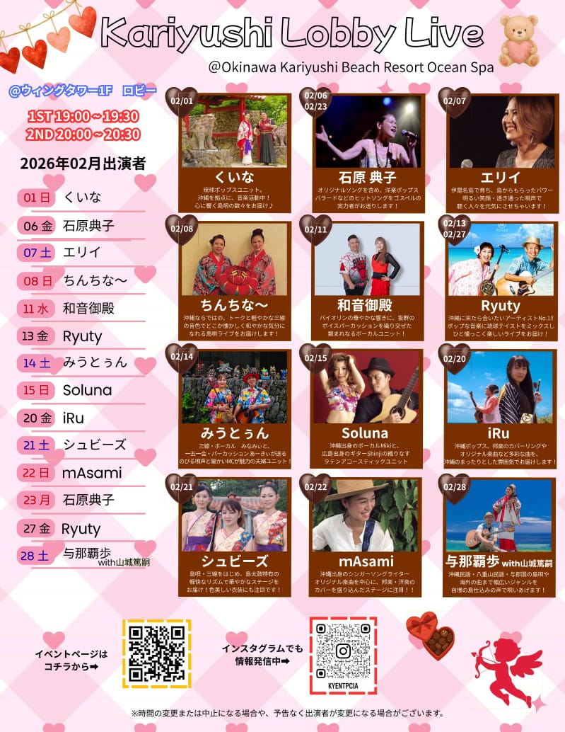 沖縄で活躍する豪華アーティスト達が素敵なステージをロビーステージでお届けいたします。